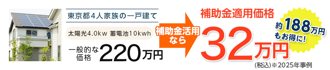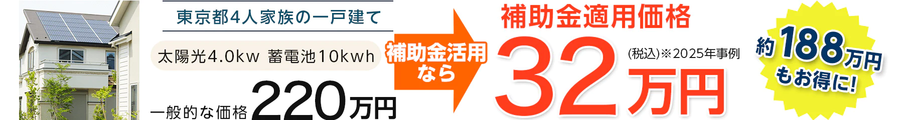 ※1 太陽光導入量容量4KW(48万)+蓄電池導入量容量10kwhの場合(補助金:130万)