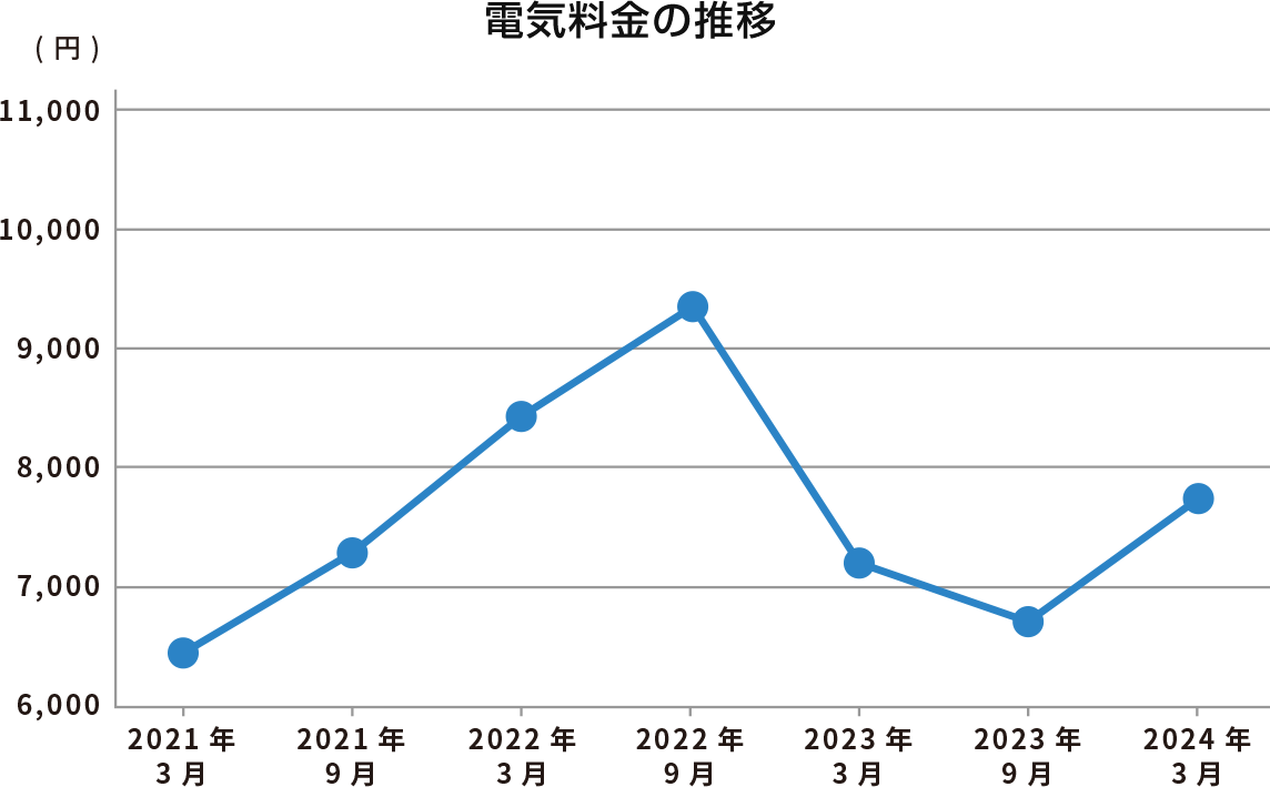 電気代は再エネ賦課金などにより毎年少しずつ値上がりすると見込まれます。
